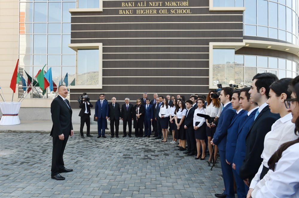 Prezident İlham Əliyev mayın 1-də Bakının Səbail rayonunun Bibiheybət qəsəbəsində inşa olunmuş SOCAR-ın Bakı Ali Neft Məktəbinin kampusunun açılışında iştirak edib.