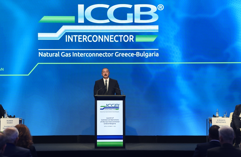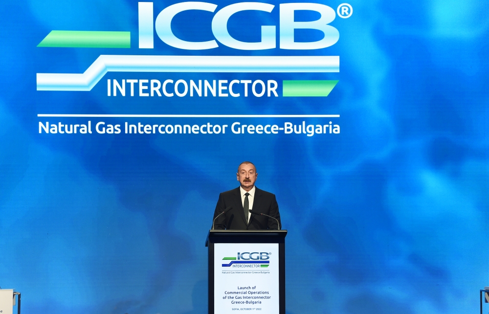 Əvvəlcə Bolqarıstan Prezidenti Radevə bu tarixi mərasimdə iştirak etmək üçün dəvətə görə təşəkkürümü bildirmək istəyirəm. Yunanıstan-Bolqarıstan Qaz İnterkonnektoru layihəsi Avropanın enerji təhlükəsizliyinin möhkəmləndirilməsində və qaz təchizatının şaxələndirilməsində mühüm rol oynayacaq. Enerji təhlükəsizliyi hər bir ölkənin milli təhlükəsizliyinin bir hissəsidir. Dünyada cari geosiyasi vəziyyət bunu bir daha sübuta yetirir. Təxminən iki ildir ki, Azərbaycan qazı Avropa bazarlarına çıxarılır və indi isə, o, Bolqarıstana daxil olur.