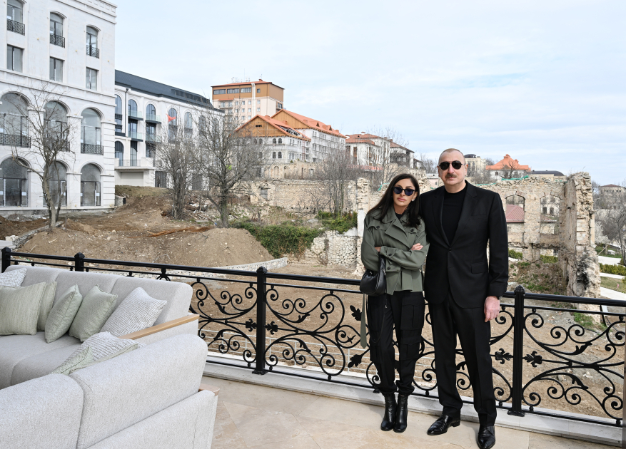 Prezident İlham Əliyev və birinci xanım Mehriban Əliyeva Şuşada Qarabağ küçəsində dövlət-özəl tərəfdaşlığı layihələri çərçivəsində aparılan tikinti işləri və iaşə obyektlərində yaradılan şəraitlə də tanış olublar.