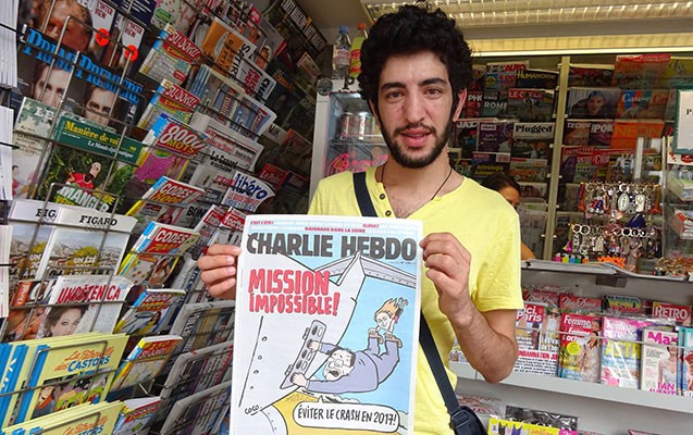 Məşhur “Charlie Hebdo” qəzetini də aldım. Məlum tearror hadisəsindən sonra, qəzetin əməkdaşları öldürüləndən sonra “Charlie Hebdo”nun tirajı milyonları keçmişdi. Lakin indi qəzetin tirajı əvvəlkinə nisbətdə azlıq təşkil edir. Üz qabığında Fransa prezidenti Hollande Françoisin karikaturası olan bu qəzetin budəfəki tirajı 250 000 təşkil edirdi. Elə yaxınlıqda yerləşən, birvaxtlar ofisinin yerləşdiyi ərəblərin məhəlləsində olan bu qəzetin hadisə baş verən redaksiyasına da yaxınlaşdıq. Lakin hadisədən sonra qəzet radaksiyasını dəyişib. Hətta qəzetin üzərində yeni ünvanı da qeyd olunmayıb. Fransızlar deyir ki, bunu təhlükəsizlik üçün belə edirlər. “Charlie Hebdo”nun budəfəki nömrəsində də müsəlmanlar və xristianlar haqda karikaturalar çoxluq təşkil edirdi.