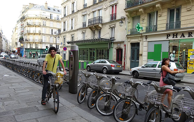 Parisdə dövlətin qurduğu maraqlı sistemlərdən biri də icarəyə asanlıqla maşın və velosiped əldə etməkdir. Belə ki, Paris küçələrinin demək olar ki, hamısında bu sistem quraşdırılıb. Əgər siz icarəyə maşın və velosiped götürmək istəyirsinizsə heç kimə müraciət etmirsiz, dağa-daşa düşmürsüz. Elə küçənin ortasında quraşdırılan bu dayanacaqların birinə yaxınlaşıb kartınızı aparata daxil etməklə istədiyiniz maşını və yaxud velosipedi alırsız, istifadə etdikdən sonra istənilən bir dayanacaqda geri qaytara bilərsiniz. Belə kirayə maşınların 1 günü 5 avro, velosipedlərin isə bir günü 2 avrodur. Maşını və yaxud velosipedi istifadə edirsən, geri qaytaranda isə aparatlar avtomtik olaraq sənin kartından pul çəkir. Biz də Fransız ənənəsinə bir az da yaxınlaşmaq üçün bu dayanacaqlardan birindən velosiped götürüb homoseksualların yaşadığı məhəlləyə yollandıq...