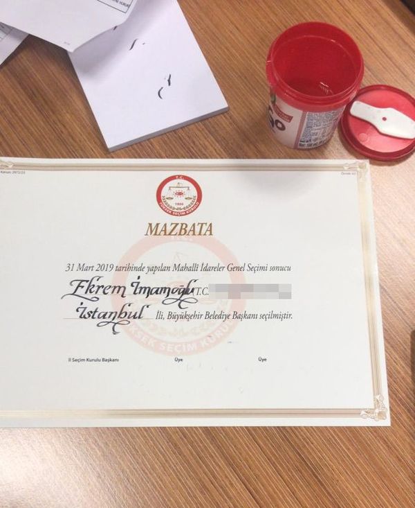 Ə. İmamoğlu İstanbul bələdiyyəsinin rəhbəri olduğunu təsdiqləyən möhürlü sənədi alıb. O, seçkilərdən 17 gün sonra bu gün Bakı vaxtilə saat 20:00-da vəzifəsini təhvil alacaq.