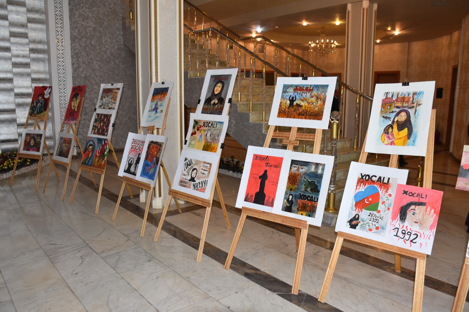 “Qafqazinfo” xəbər verir ki, əvvəlcə Xocalı soyqırımı qurbanlarının xatirəsinə həsr olunmuş rəsm sərgisinə baxış keçirilib.
