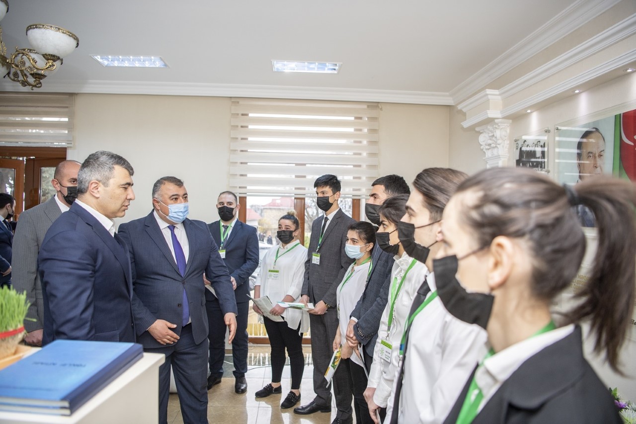 Daha sonra nazir İnam Kərimov Şəki Dövlət Aqrar İnkişaf Mərkəzinin inzibati binasında yaradılan şəraitlə tanış olub, fermerlərə informasiya məsləhət xidmətinin göstərilməsində iştirak edən Aqrar İnkişaf Könüllülərinin bir qrupu ilə görüşüb.