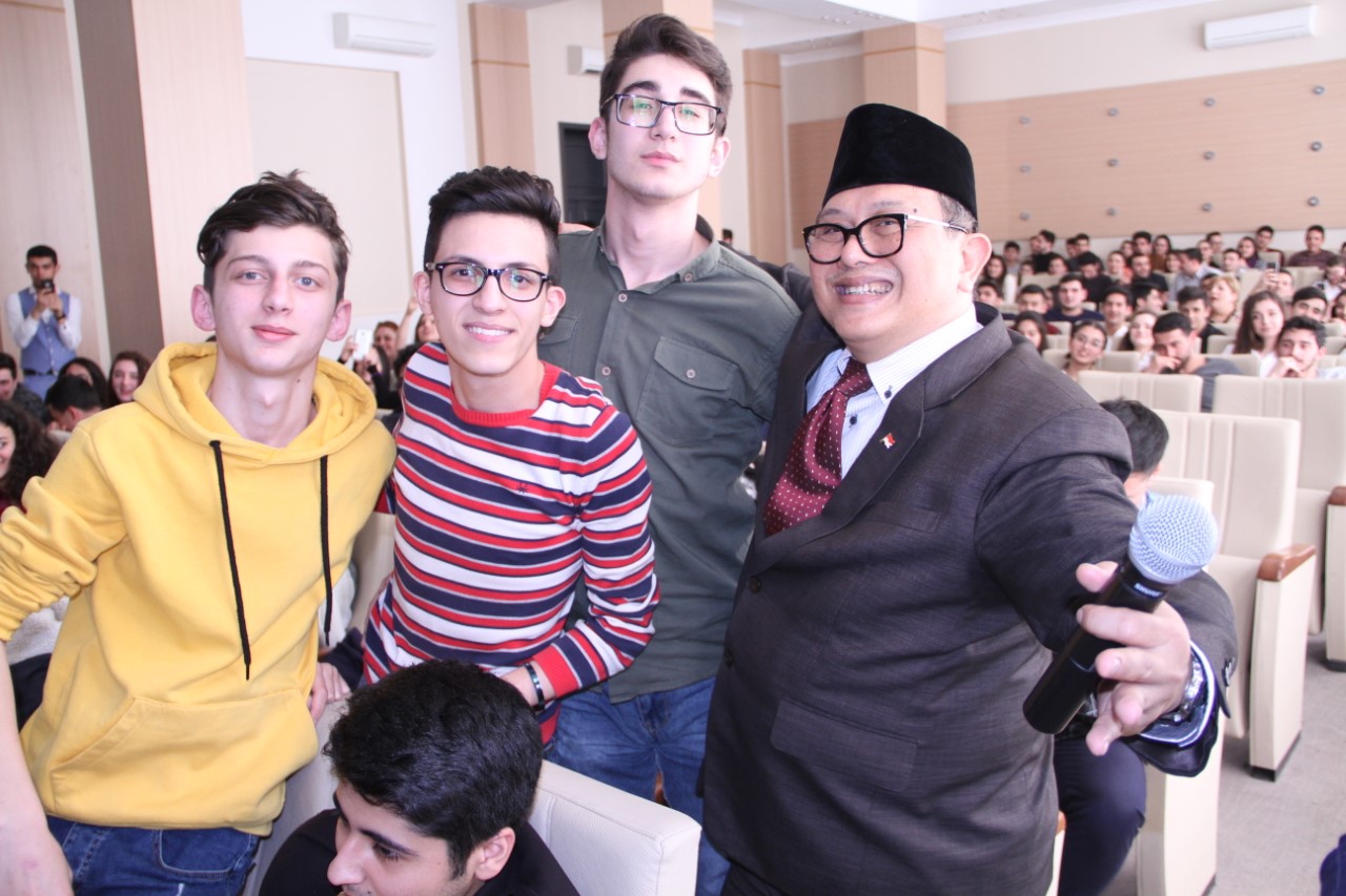 Diplomat əhalisinin sayına görə dünyanın ən böyük müsəlman ölkəsi olan İndoneziyanın tarixi, mədəniyyəti və iqtisadiyyatı haqqında tələbələrə ətraflı məlumat verib. Azərbaycan mədəniyyəti, elmi, ictimai-siyasi həyatı ilə uşaqlıq yaşlarından maraqlandığını deyən səfir Azərbaycanda çox böyük işlər gördüyünü, ölkəmizin dinamik inkişaf yolunda olduğunu bildirib. Çıxışında Ermənistan-Azərbaycan, Dağlıq Qarabağ münaqişəsinə də toxunan diplomat ölkəsinin Azərbaycanın ədalətli mövqeyini- ərazi bütövlüyünü birmənalı şəkildə müdafiə etdiyini vurğulayıb.