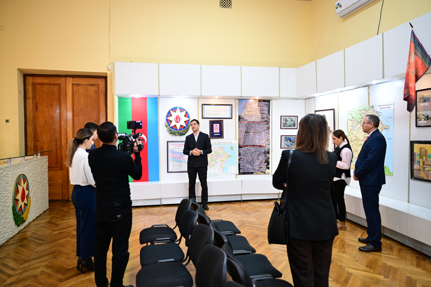 Sonra media nümayəndələri Milli Azərbaycan Tarixi Muzeyi ilə tanış olublar. Bələdçi muzeyin tarixi, fondları və ekspozisiya zalları barədə ətraflı söhbət açıb. Qeyd olunub ki, muzeyin eksponatları arxeologiya, etnoqrafiya, foto-neqativ materiallar, hədiyyələr və xatirə əşyaları, köməkçi materiallar, köməkçi tarixi fənn materialları, numizmatika, silahlar və bayraqlar, sənədli mənbələr, təsviri materiallar, Vətən müharibəsi və xüsusi fondları üzrə təqdim edilir.