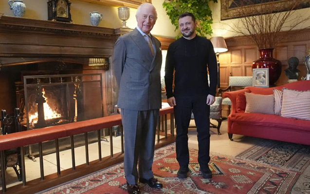 Zelenski Londondan helikopterlə kralın malikanəsinə enib. Çarlz Ukrayna liderini özü qarşılayıb.