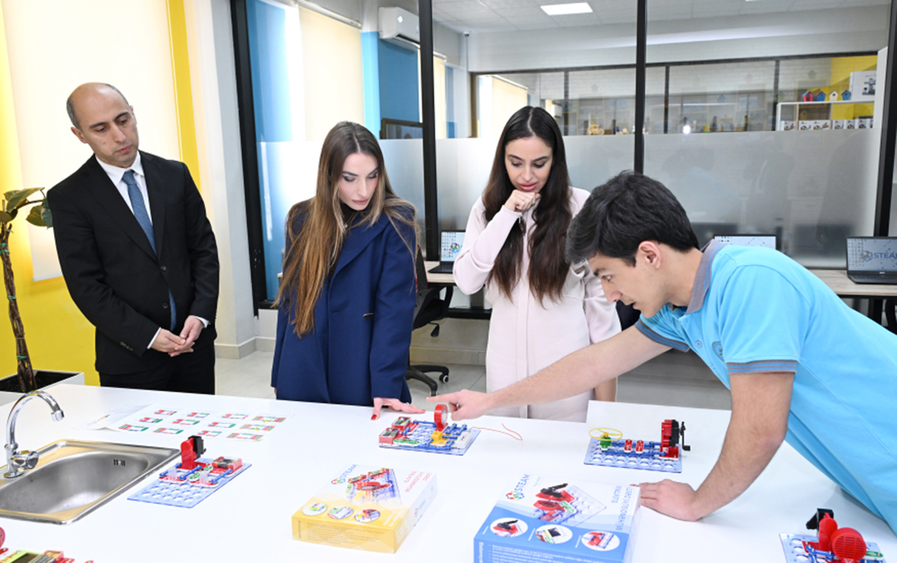 Leyla Əliyeva və Alena Əliyeva Gəncə şəhər Fizika, riyaziyyat və informatika təmayüllü liseydə fəaliyyət göstərən STEAM mərkəzində və Gəncə şəhər 37 nömrəli tam orta məktəbdə olublar.