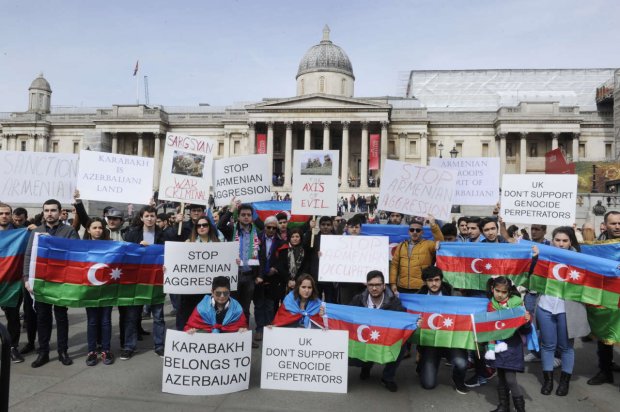 Azərbaycanın haqq işinə dəstək məqsədilə Avropa Azərbaycan Cəmiyyətinin (TEAS) təşkilatçılığı ilə Böyük Britaniyada yaşayan diaporumuzun fəalları və burada təhsil alan tələbələrimiz, beynəlxalq hüquq müdafiəçiləri aprelin 10-da paytaxt Londonun mərkəzində etiraz aksiyası keçiriblər.