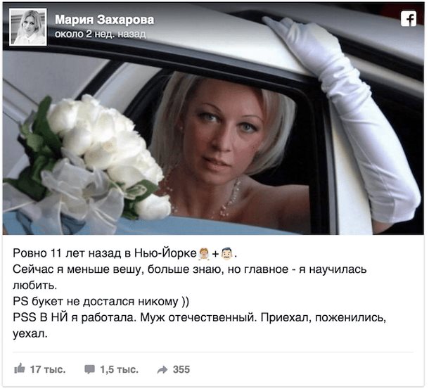 Ancaq təkcə sosial şəbəkələrdəki status və şərhləri deyil, həm də redaksiyamızın əlinə keçən və hələ 2005-ci ildə Nyu-Yorkda çəkilmiş şəkillər də onu xüsusilə qabarıq şəkildə təqdim edir, açır. O vaxt Zaxarova Nyu-Yorkda işləyirdi və iş adamı Andrey Makarovla nikahda idi.