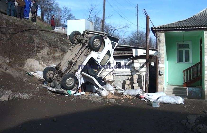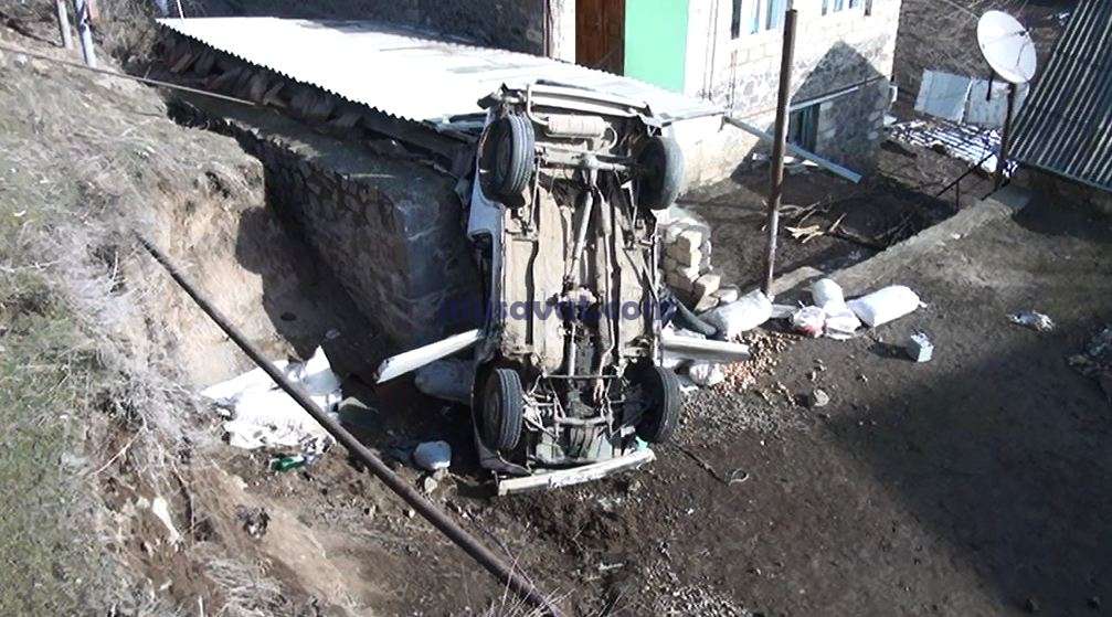 Tovuzda yoldan çıxan avtomobil kənd sakininin həyətinə düşüb.