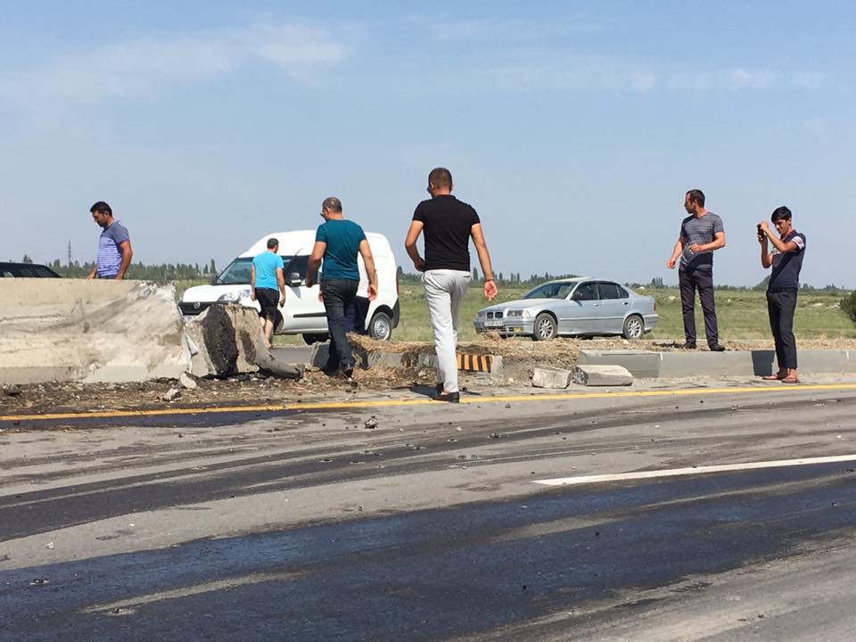 “99 JM 803” nömrəli yük maşınının sürücüsünün idarəetməni itirməsi nəticəsində avtomobil aşıb. O, qarşı yola çıxaraq bir neçə metr səkiyə sürtünüb. Nəticədə, yol infrastrukturuna ziyan dəyib.