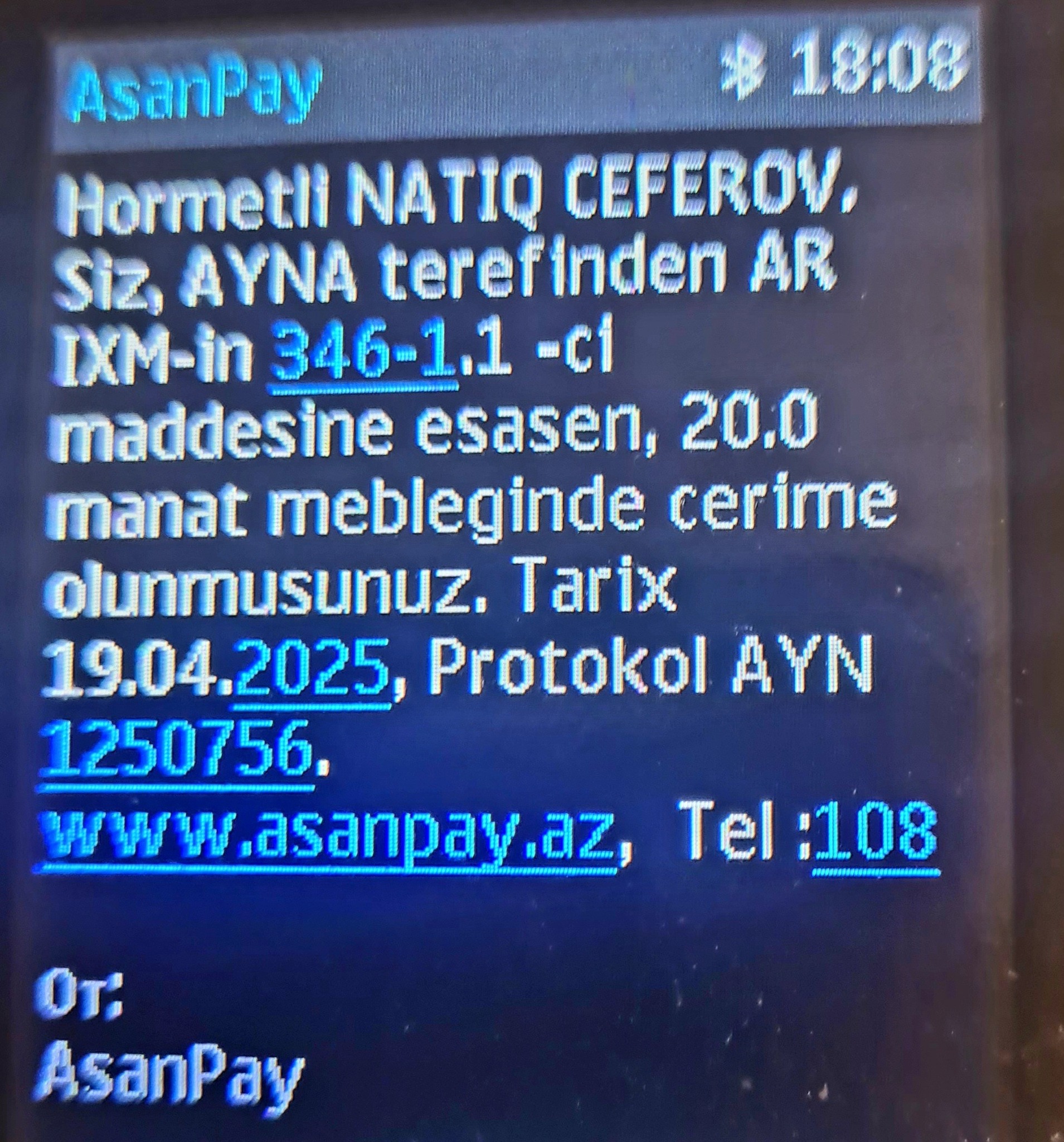 Qeyd edək ki, inzibati protokol İnzibati Xətalar Məcəlləsinin 346-1.1-ci maddəsinə əsasən tərtib edilib. Bu maddə nəqliyyat vasitəsinin istifadəçisi tərəfindən nəqliyyat vasitəsilə ödənişli parklanma yerinə daxil olduqdan sonra xüsusi proqram təminatı və ya SMS vasitəsilə parklanma müddətinin başladılmamasına, nəqliyyat vasitəsinin parklanmasına görə müəyyən edilmiş ödəniş edilmədən və ya ödəniş edilmiş müddətdən artıq parklanma yerindən istifadə üçün əlavə ödəniş edilmədən parklanma yerinin tərk edilməsini nəzərdə tutur.