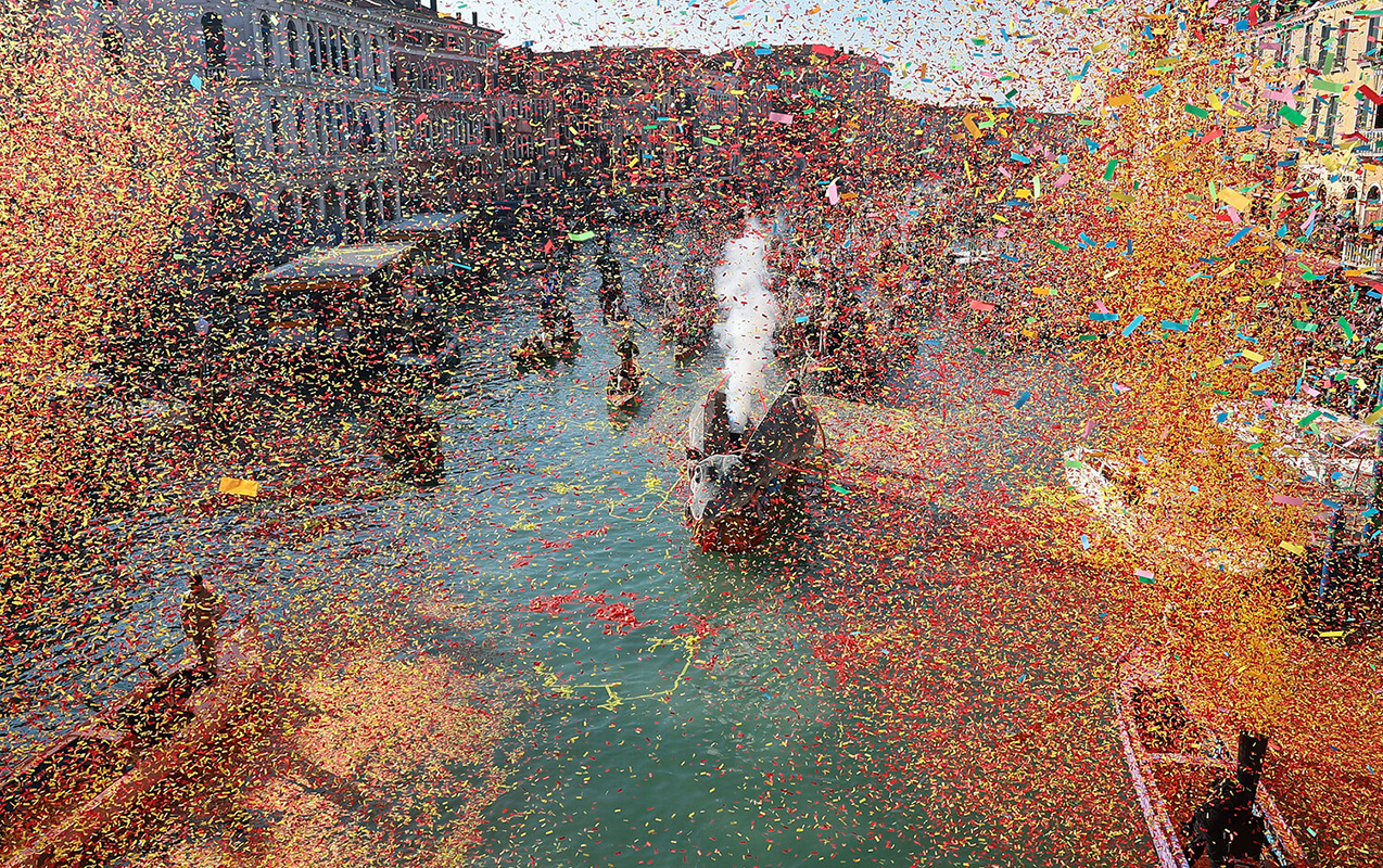 Ertəsi gün Böyük Kanalda ənənəvi su paradı keçirilib. Sütunun başında Venesiya simvolu - nəhəng siçovul formalı gəmi dayanıb və onu kostyumlu avarçəkənlərlə 100-ə yaxın qayıq izləyib.