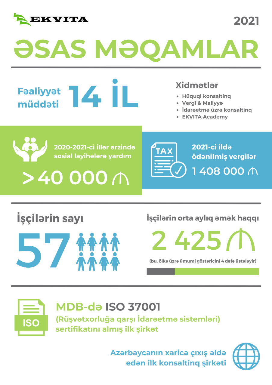 İSO 37001 sertifikatı şirkətdə korrupsiya ilə mübarizə proseslərini tənzimləyən bir sistemdir. EKVİTA 2017-ci ildə həmin İSO 37001 sertifikatını almışdır və bu sertifikatı alan ilk Azərbaycan təşkilatıdır. Bildiyim qədər, o zaman bu sertifikatı bütöv MDB məkanında alan ilk şirkət də məhz biz olduq. Həmin tarixdən bu günədək hər il beynəlxalq auditorlar şirkətimizin fəaliyyətdə yarana biləcək korrupsiya risklərini tam əhatəli şəkildə təftiş edirlər. 2017-2020-ci illər üzrə auditorumuz Fransanın “Ethics İntelligence” şirkəti olmuşdur, 2020-ci ildən bu günədək isə məşhur Lloyd’s şirkətidir. Son dəfə bu audit 2021-ci ilin may ayında aparılmışdır və uğurla bitirilmişdir. Faktiki olaraq, bu cür auditləri könüllü təşkil edən Azərbaycanın yeganə konsaltinq şirkəti EKVİTA-dır.