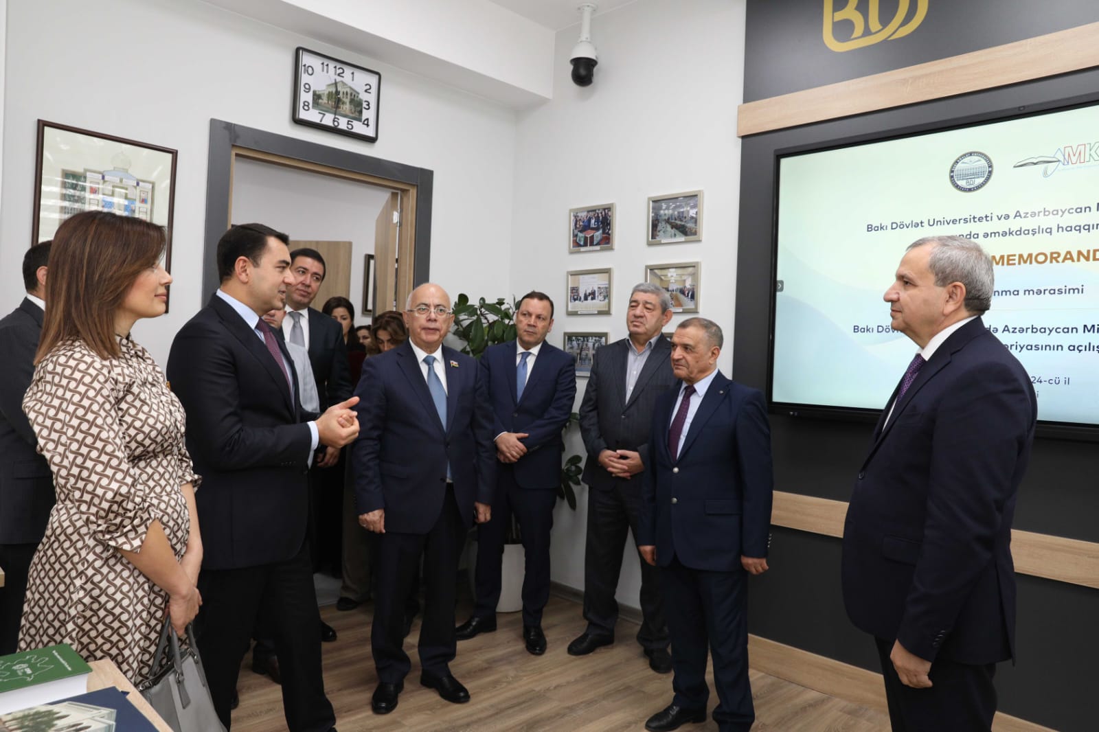 Rektor Elçin Babayev isə bildirib ki, hər bir universitet işəgötürənlərlə münasibətləri düzgün qurmağı bacarmalıdır: “BDU-da müasir dövrün çağırışlarına cavab verən yeni texnologiyaların tətbiqinə xüsusi önəm verilir, əmək bazarının tələblərinə uyğun yeni ixtisas və ixtisaslaşmalar açılır. Xüsusi auditoriyanın açılışı ilə yanaşı, BDU və Azərbaycan Milli Kitabxanası arasında bu gün imzalanan anlaşma memorandumu da əməkdaşlıq baxımından yeni imkanlar yaradır. Hər iki müəssisə arasında əməkdaşlığın hüdudları daha da genişlənir, tələbələrin elə Universitetin özündə təcrübəkeçmə imkanları yaranır”.