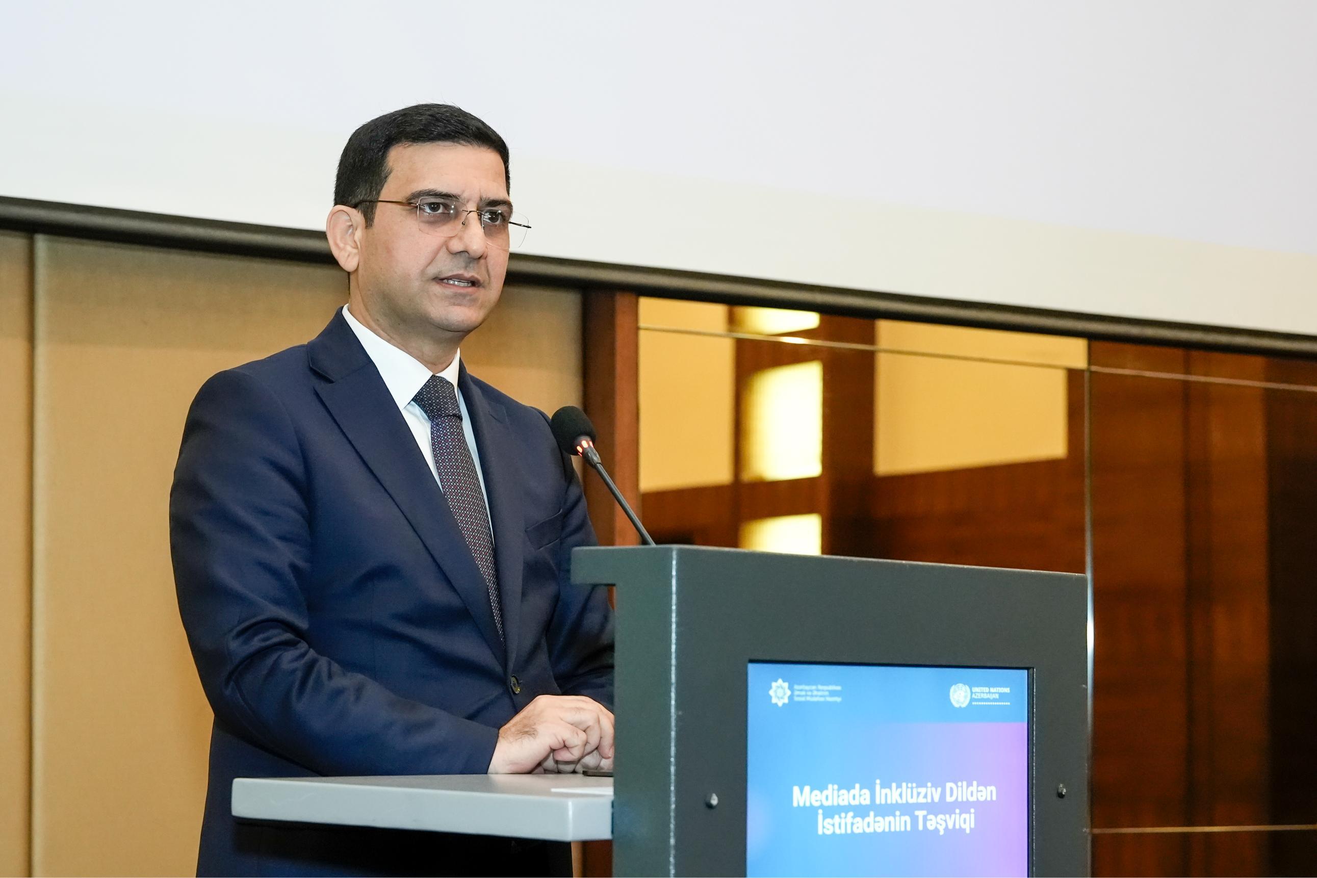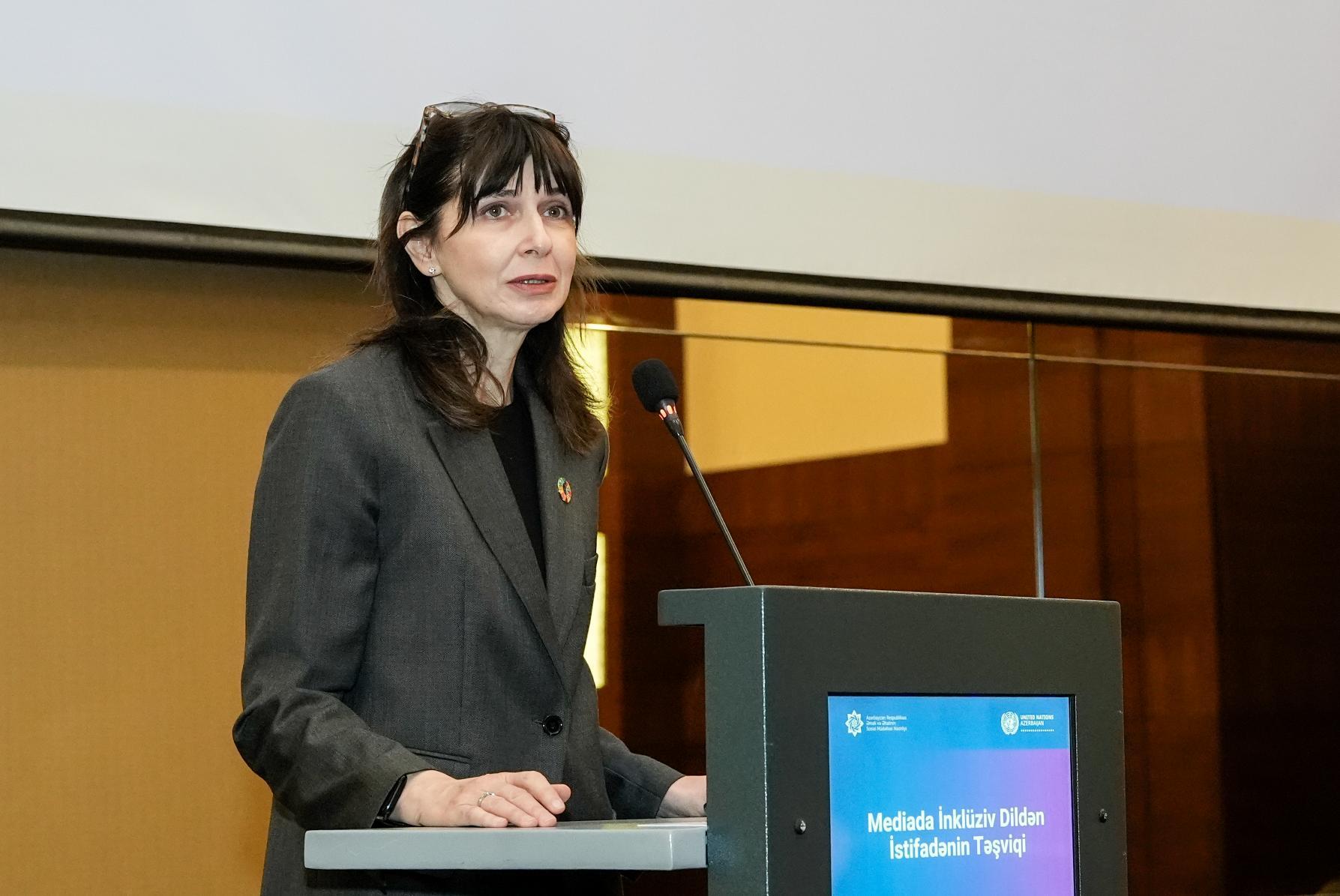 BMT-nin Azərbaycandakı rezident əlaqələndiricisi xanım Vladanka Andreeva BMT-nin Əlillik üzrə İnklüziv Kommunikasiya Təlimatını qeyd edib, mediada inklüziv dildən istifadənin əhəmiyyətini, bu təlimin iştirakçılar arasında dialoqu təşviq etməyi, yaxşı təcrübələri paylaşmağı və mediada inklüziv dildən istifadə üzrə potensialı artırmağı hədəflədiyini bildirib.