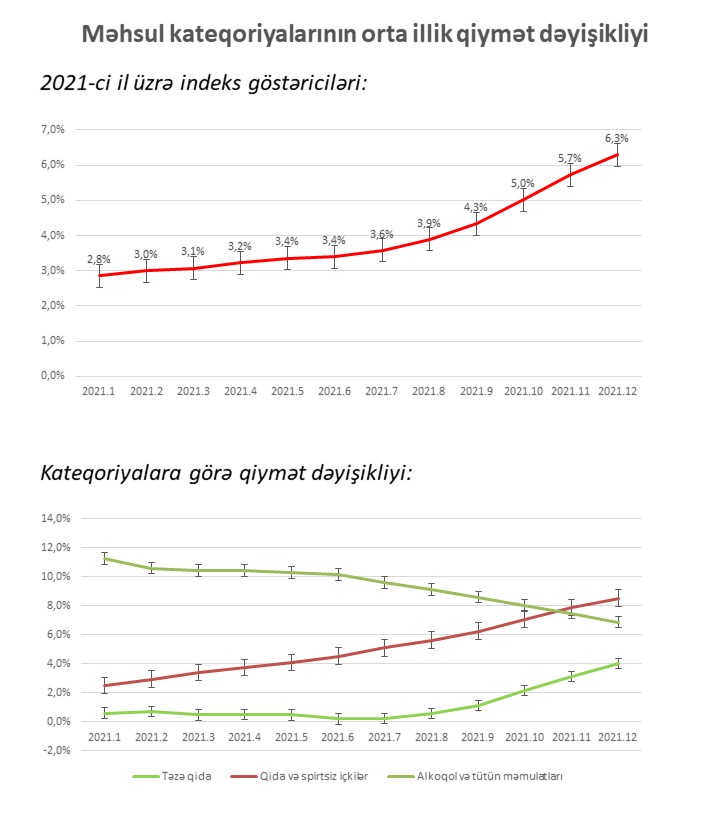 “Veysəloğlu Pərakəndə İndeksi”nə görə, məhsulların qiymətində 2020-ci ilin yanvar-dekabr aylarına nisbətən 2021-ci ilin yanvar-dekabr aylarında orta hesabla 6,3% artım müşahidə olunub.