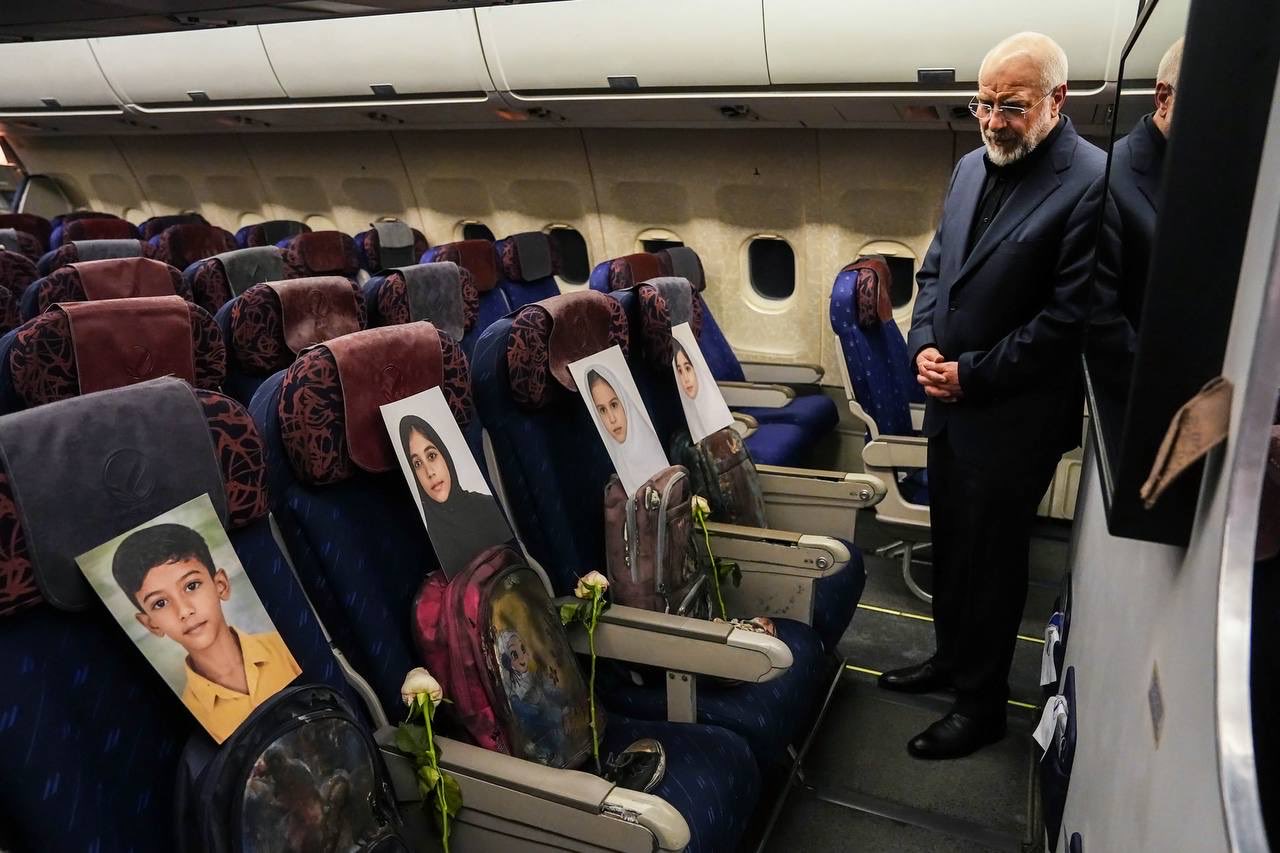 Minabda həlak olan uşaqların əşyaları İran parlamentinin sədri Məhəmməd Baqer Qalibafı Pakistana aparan təyyarədə nümayiş etdirilib.