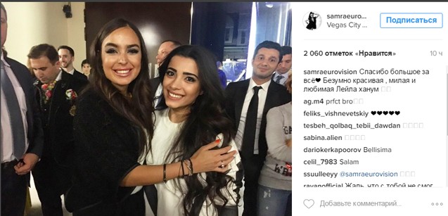 “Eurovision- 2016” mahnı müsabiqəsində Azərbaycanı təmsil edən Səmra Rəhimli prezident İlham Əliyevin qızı, Heydər Əliyev Fondunun vitse-prezidenti Leyla Əliyeva ilə bir arada olub.