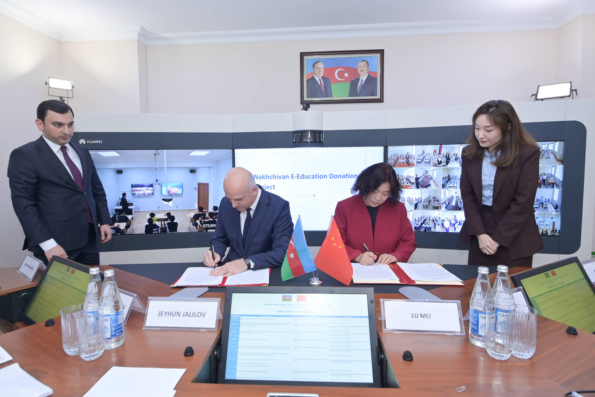 Tədbirdə Azərbaycan Hökuməti ilə Çin Hökuməti arasında Naxçıvan Muxtar Respublikasına “İnteraktiv təhsil yardımı” layihəsinə dair təhvil-təslim aktı imzalanıb.