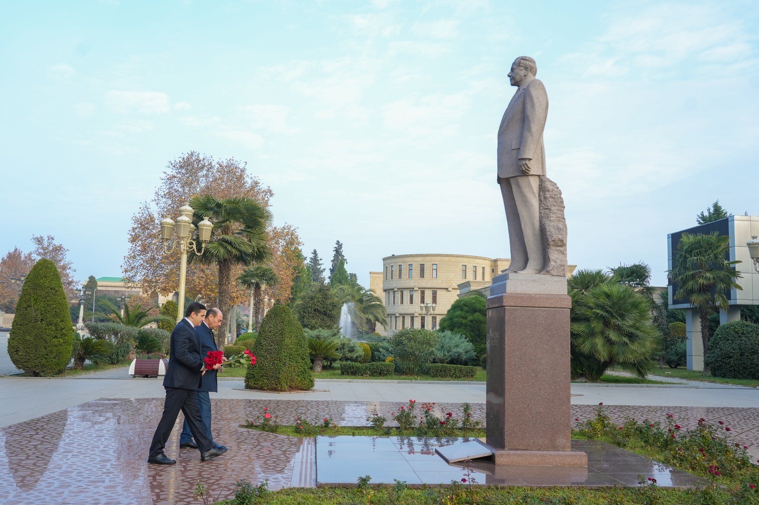 “Qafqazinfo” xəbər verir ki, nazir qəbuldan əvvəl Ümummilli Lider Heydər Əliyevin abidəsini ziyarət edib və önünə gül dəstəsi qoyub.