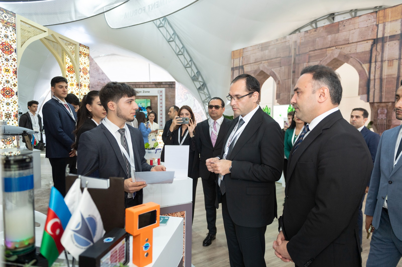 Tədbirdən sonra nazir forum çərçivəsində Kənd Təsərrüfatı Nazirliyinin təmsil olunduğu “Agro Technology” bölməsinə baş çəkib. Bu pavilyonda Aqrar İnnovasiya Mərkəzinin təşkilatçılığı ilə yerli aqrar startapçılar öz məhsullarını nümayiş etdiriblər. Burada, suvarma şəbəkələrinin avtomatlaşdırılması, sensor texnologiyaları, biotexnoloji üsullarla istehsal edilmiş bitkilərin satışını həyata keçirən vahid platforma, aqrar fəaliyyətlərin ağıllı idarəedilməsi üzrə proqram təminatları nümayiş etdirilib.