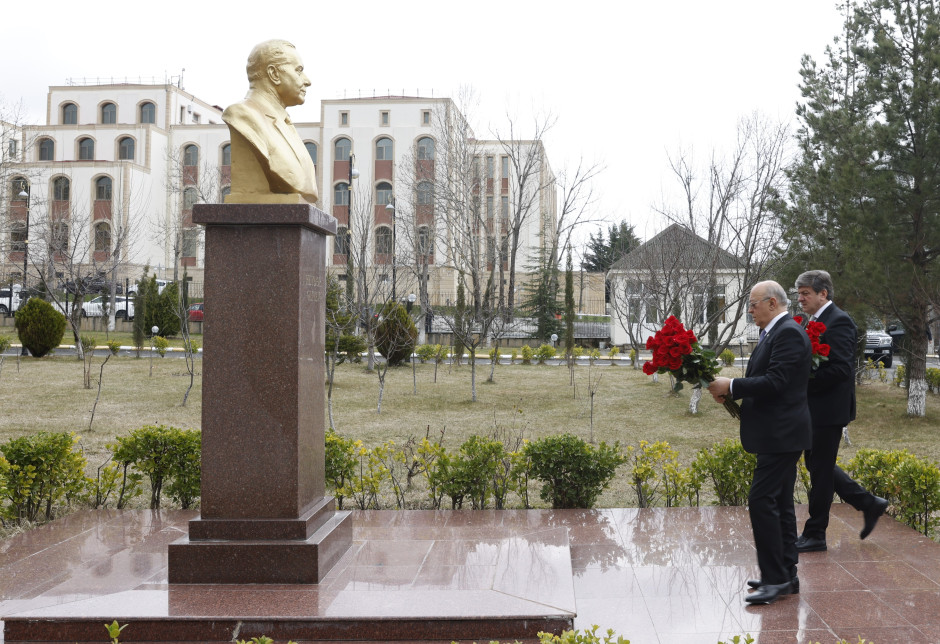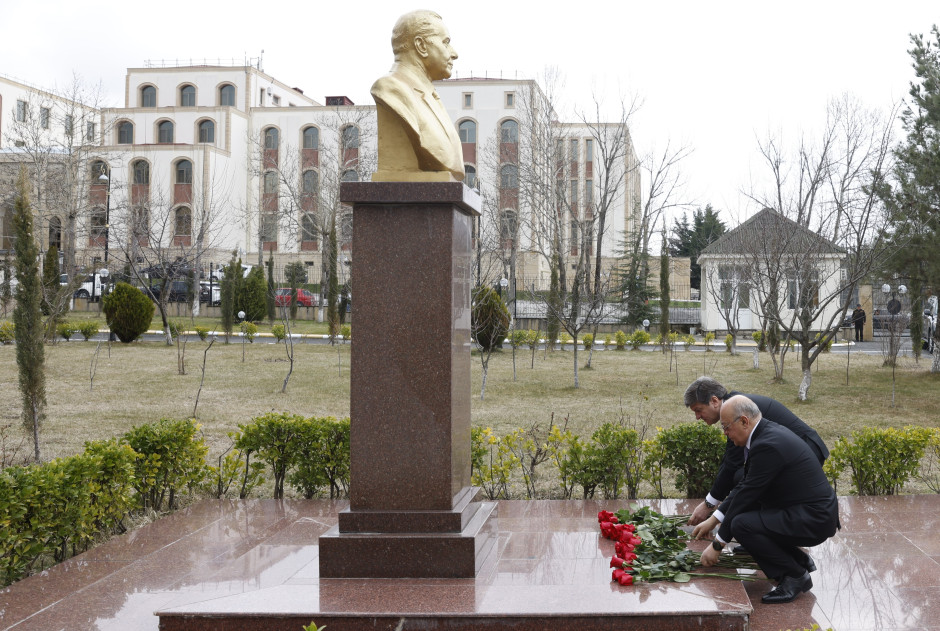“Qafqazinfo” xəbər verir ki, əvvəlcə nazir Ümummilli Lider Heydər Əliyevin Regional Mərkəzin həyətində ucaldılmış büstünü ziyarət edərək önünə gül dəstəsi qoyub, əziz xatirəsini dərin ehtiramla yad edib.