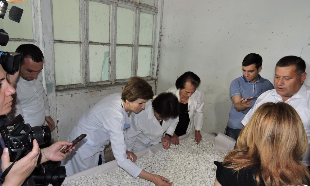 “Qafqazinfo” xəbər verir ki, jurnalistlər əvvəlcə Qax Damazlıq İpəkçilik Stansiyasında olublar. Diqqətə çatdırılıb ki, 2017-ci ildə Kənd Təsərrüfatı Nazirliyi tərəfindən tender müqaviləsi əsasında Çin Xalq Respublikasından 6 min qutu yüksək keyfiyyətli hibrid ipəkqurdu sənaye toxumları (qrena) tədarük edilib və apreldə Qax Damazlıq İpəkçilik Stansiyasında inkubasiyaya qoyulub. Barama toxumlarından 99-100 faiz səviyyəsində yüksək keyfiyyətli ipəkqurdları əldə edilib və bəslənilmək üçün respublikanın 31 rayonunun 739 kəndini əhatə edən 3013 kümçü ailəsinə əvəzi ödənilmədən paylanılıb.