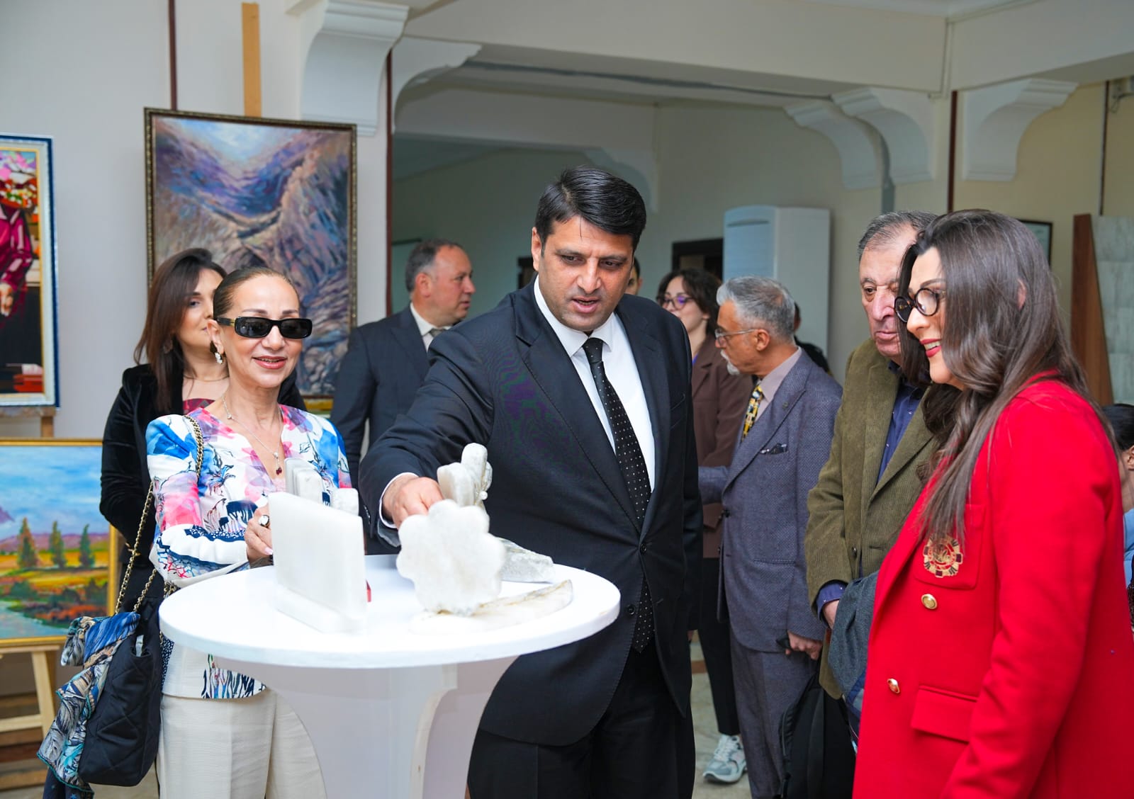 Öncə universitetin İncəsənət fakültəsində tələbələrin rəsm əsərlərindən və dekorativ-tətbiqi sənət nümunələrindən ibarət sərgiyə baxış olub, qonaqlara duzdan hazırlanmış müxtəlif zinət əşyaları hədiyyə edilib.