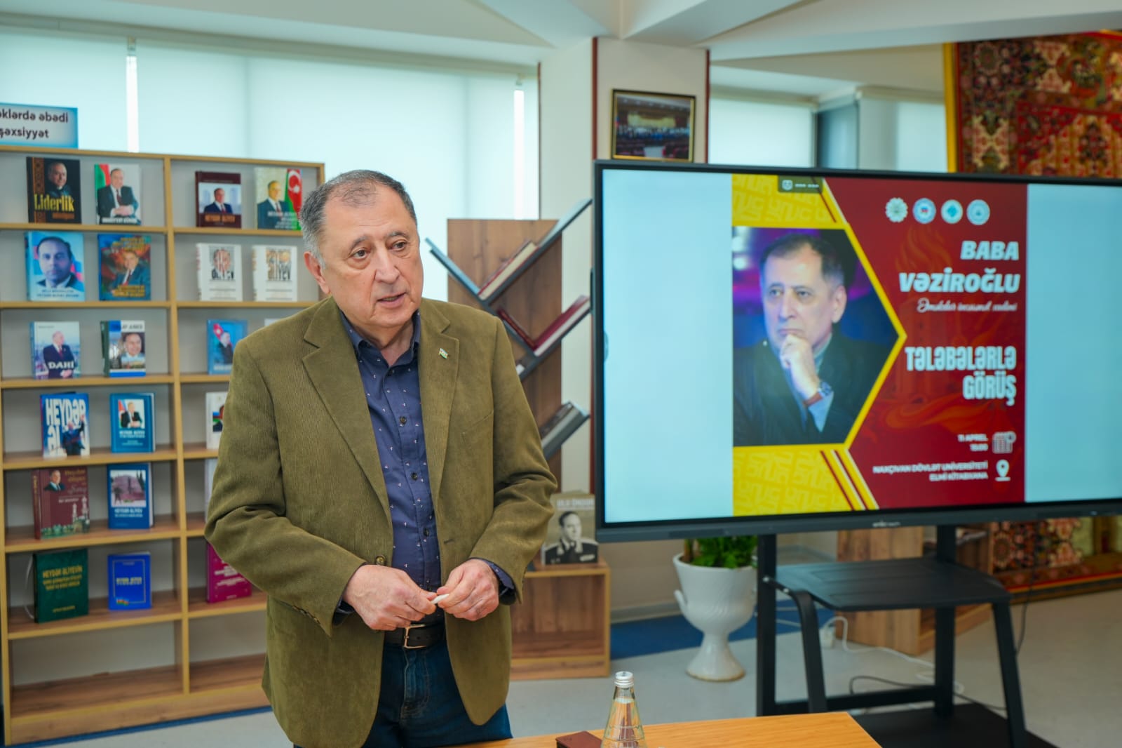 Universitetin Elmi Kitabxanasında Əməkdar incəsənət xadimi Baba Vəziroğlu ilə görüş baş tutub. Tədbiri giriş sözü ilə açan Tarix-filologiya fakültəsinin dekanı, filologiya üzrə fəlsəfə doktoru Arif Ağalarov çıxışında şair, tərcüməçi, kinodramaturq Baba Vəziroğlunun nəğməkar şair kimi Azərbaycan ədəbiyyatında xüsusi yer tutduğunu vurğulayıb. Diskussiya formatında davam edən görüşdə Baba Vəziroğlu müəllim və tələblərin suallarını cavablandırıb, öz şeirlərini səsləndirib.