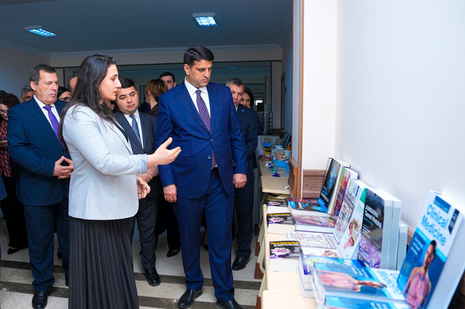 Naxçıvan Dövlət Universitetinin rektoru Elbrus İsayev Tibb fakültəsinin laboratoriyaları üçün yeni alınmış avadanlıqlar və “Naxçıvan Muxtar Respublikasının sosial-iqtisadi inkişafına dair 2023–2027-ci illər üçün Dövlət Proqramı”nın icrası çərçivəsində Tibb fakültəsində, eləcə də SABAH qruplarında müasir tibb təhsilinin inkişafına yönəlmiş yeni alınan kitabların təqdimatında iştirak edib.