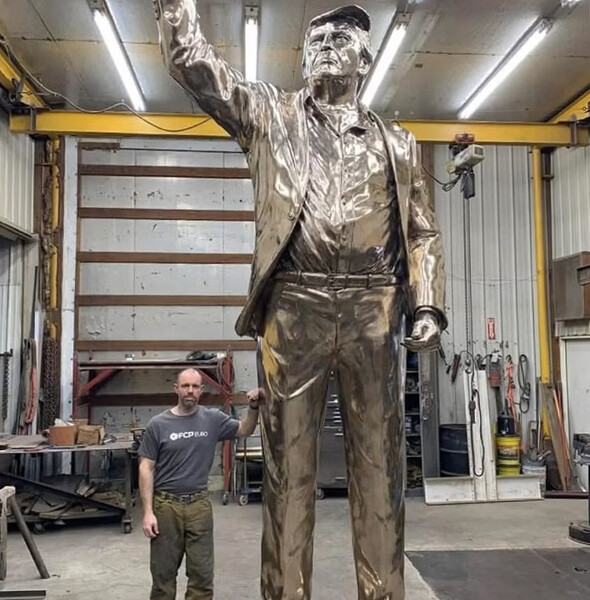 Heykəl Alan Kottrell tərəfindən $PATRIOT sikkələrini təbliğ edən kriptovalyuta investorlarının sifarişi ilə hazırlanıb.
