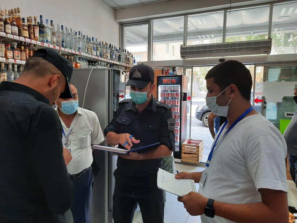 "Qafqazinfo" xəbər verir ki, 2 iyul tarixindən mobil qruplar tərəfindən fəaliyyətinə icazə verilmiş ictimai-iaşə obyektlərində, marketlərdə, banklar və filiallarında, bankomatların qarşısında, eləcə də bazarlarda və digər obyektlərdə həyata keçirilən reydlər zamanı vətəndaşlarla maarifləndirmə işləri aparılır, aşkarlanan ciddi qanun pozuntuları polis əməkdaşları tərəfindən sənədləşdirilir və Nazirlər Kabinetinin Operativ Qərargahının tələblərinə zidd fəaliyyət göstərən obyektlərə xəbərdarlıq edilərək qoruyucu tibbi maskalardan istifadə olunması, sanitar-gigiyenik qaydalara ciddi riayət edilməsi, sosial ara məsafənin saxlanılması, satıcıların və girişdə alıcıların dezinfeksiyaedici məhlullarla təmin edilməsi, obyektlərə daxil olan vətəndaşların qızdırmalarının ölçülməsi, piştaxtaların aralı yerləşdirilməsi və digər karantin rejiminin tələb və qaydalarına əməl edilməsi barədə göstərişlər verilir.