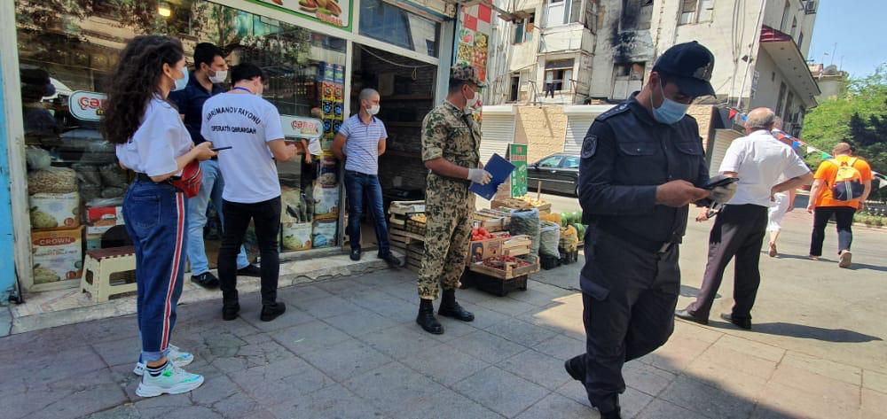 Ötən 2 gün ərzində aidiyyəti strukturların əməkdaşlarından ibarət mobil işçi qruplarının üzvləri tərəfindən rayon ərazisində fəaliyyət göstərən 350-dən artıq ticarət və ictimai-iaşə obyektlərində, eləcə də bazarlarda reydlər keçirmiş, 200-ə yaxın obyektə və vətəndaşa karantin rejimi qaydalarını pozduqlarına və gigiyenik qaydalara riayət etmədikləri üçün xəbərdarlıq edilmiş, aparılan mübarizə tədbirləri ilə tanış olaraq satıcı və alıcılarla maarifləndirici söhbətlər aparılmış, pandemiyaya qarşı mübarizədən irəli gələn tələb və tövsiyələr izah edilib.