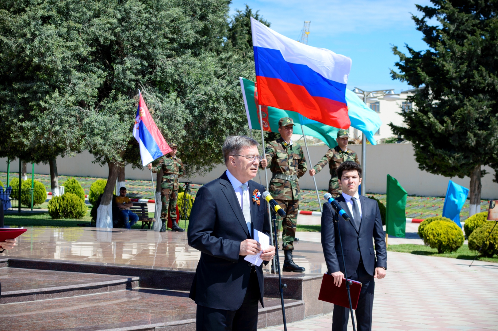 “Qafqazinfo” xəbər verir ki, Böyük Vətən müharibəsi veteranları, Milli Məclisin deputatları, MDB ölkələrinin ölkəmizdəki səfirlərinin və digər akkreditə olunmuş nümayəndələrinin, hərbçilər, gənclər, rayon ictimaiyyəti nümayəndələrinin iştirak etdiyi tədbir Azərbaycanın dövlət himninin səsləndirilməsi və Böyük Vətən Müharibəsində, həmçinin torpaqlarımızın ərazi bütövlüyü uğrunda canlarını fəda etmiş qəhrəman Vətən övladlarının əziz xatirəsinin bir dəqiqəlik sükutla yad edilməsi ilə başlayıb.
