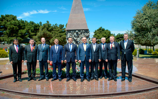 Sonra əllərində MDB dövlətlərinin bayraqlarını tutmuş gənc şahinlərin Böyük Vətən müharibəsində həlak olanların xatirəsinə ucaldılmış abidənin önündən fəxri keçidi olub.