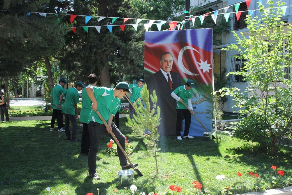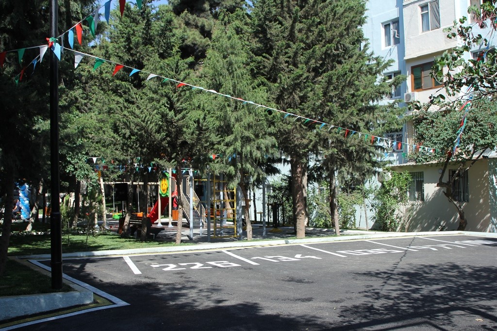 500-dək ağac və müxtəlif növ gül kolları əkilib. Abadlıq işləri aparılan ərazidəki mövcud yaşıllıqlara və ağaclara aqrotexniki qaydada qulluq olunub. Yaşıllıqların suvarılması üçün 200 p.mə yaxın su xətti çəkilib. Həyətdə 7 nöqtədə işıqlandırma sistemləri quraşdırılıb. Avtomobillər üçün parklanma yeri yaradılıb.