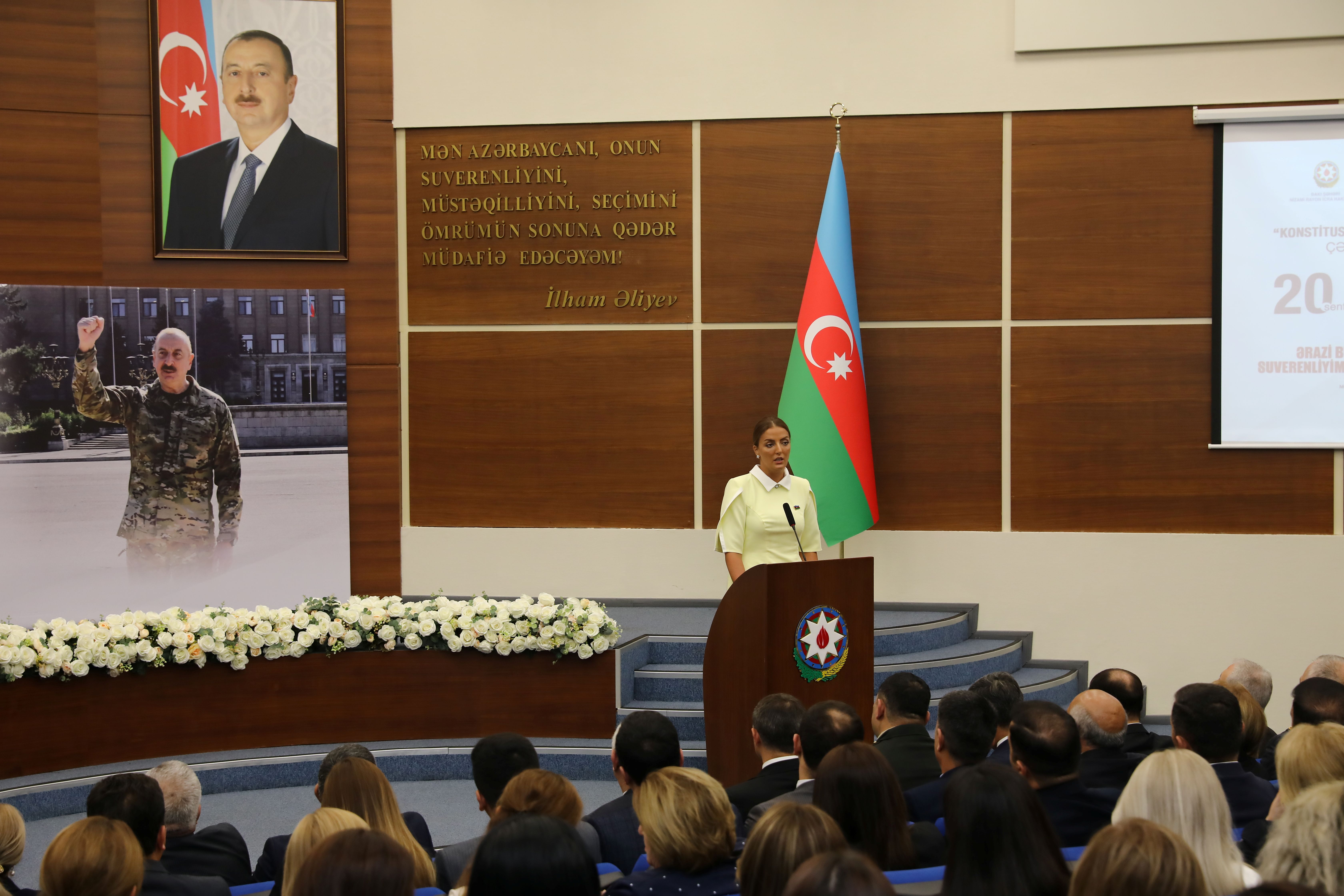 Nizami Rayon İcra Hakimiyyətinin və Yeni Azərbaycan Partiyası Nizami rayon təşkilatının birgə təşkilatçılığı ilə “Konstitusiya və Suverenlik İli” çərçivəsində 20 Sentyabr- Azərbaycanda Dövlət Suverenliyi Günü münasibətilə “Ərazi bütövlüyümüz və suverenliyimiz milli sərvətimizdir” mövzusunda konfrans keçirilib.