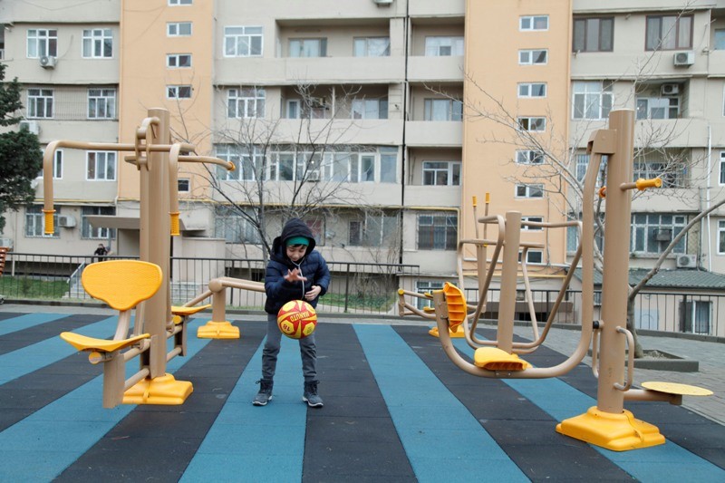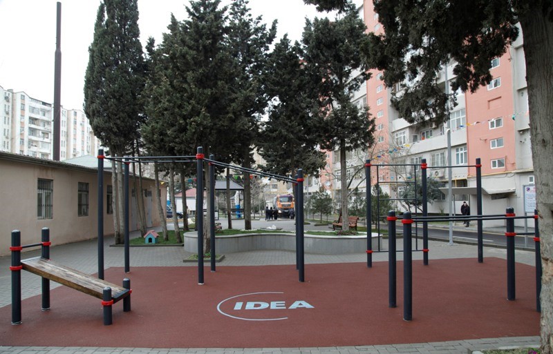 Yenilənmiş həyətdə karantin dövrünün tələblərinə uyğun olaraq tibbi-profilaktik tədbirlər həyata keçirilib, dezinfeksiya dispenserləri qoyulub, karantin rejimi qaydalarına riayət olunması ilə bağlı xəbərdarlıq edən maarifləndirici lövhələr quraşdırılıb.