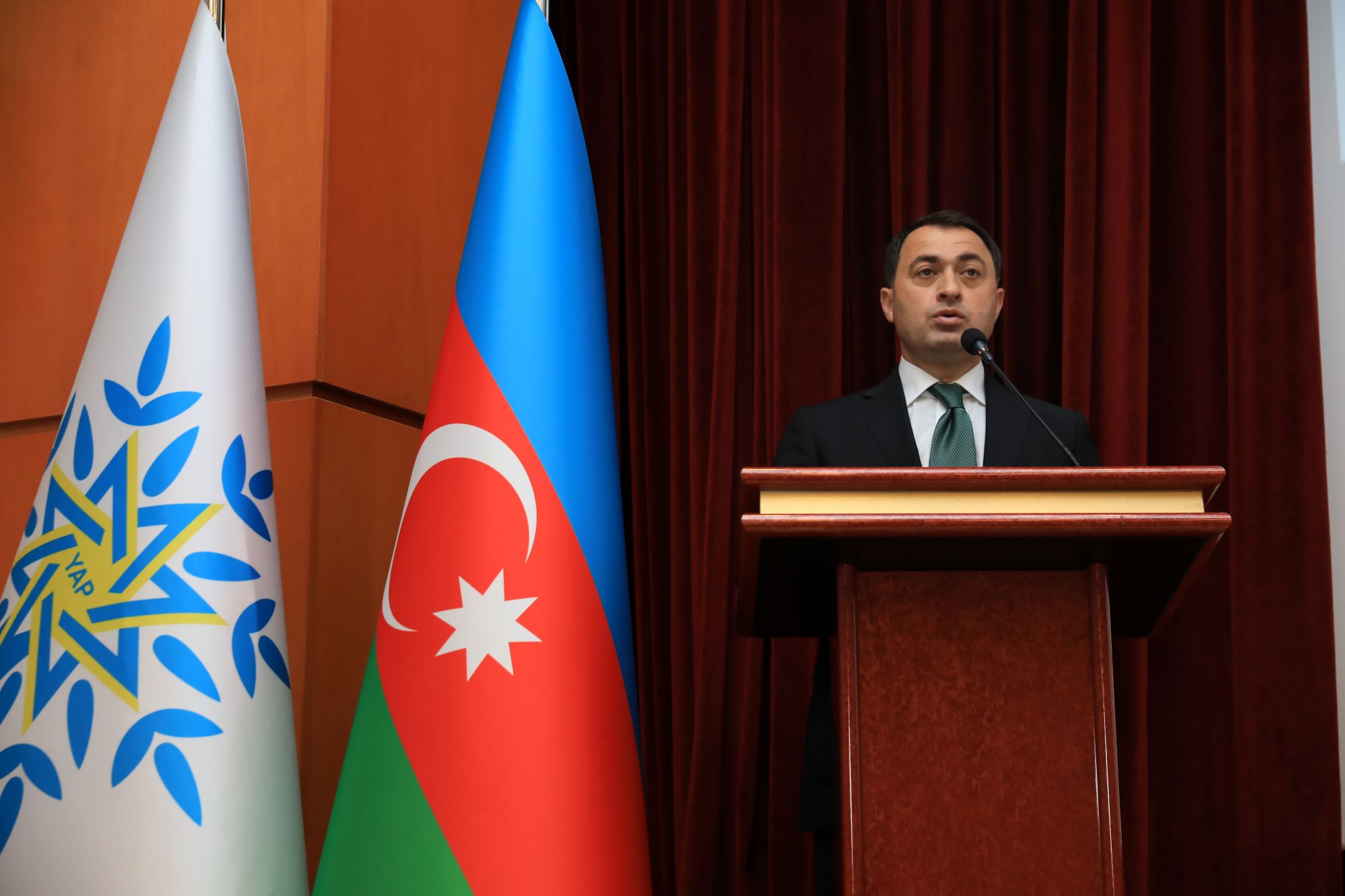 Konfransda Nizami Rayon İcra Hakimiyyətinin başçısı Coşqun Cəbrayılov, Yeni Azərbaycan Partiyası Veteranlar Şurasının üzvü, Azərbaycan Respublikasının Prezidenti yanında Dövlət İdarəçilik Akademiyasının rektoru, akademik Urxan Ələkbərov, Milli Məclisin deputatları Sədaqət Vəliyeva, Rasim Musabəyov və Yeni Azərbaycan Partiyası Nizami rayon təşkilatının sədri Ramil Vəlibəyov çıxış ediblər.