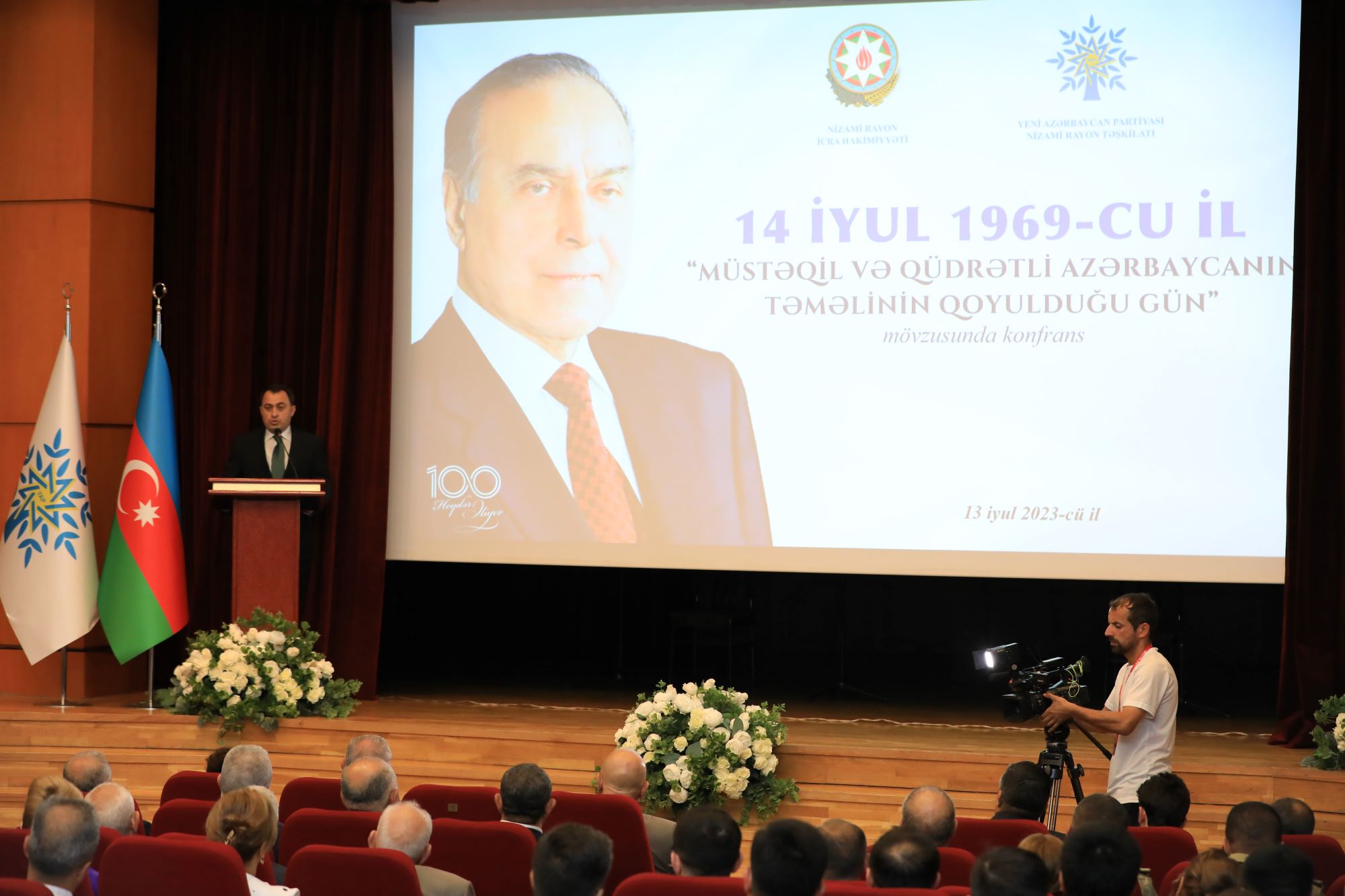 “Heydər Əliyev İli” çərçivəsində Nizami Rayon İcra Hakimiyyətinin və Yeni Azərbaycan Partiyası Nizami rayon təşkilatının birgə təşkilatçılığı ilə Ulu Öndər Heydər Əliyevin 14 iyul 1969-cu ildə Azərbaycana rəhbər təyin edilməsinin 54-cü ildönümü münasibətilə “Müstəqil və qüdrətli Azərbaycanın təməlinin qoyulduğu gün” mövzusunda konfrans keçirilib.