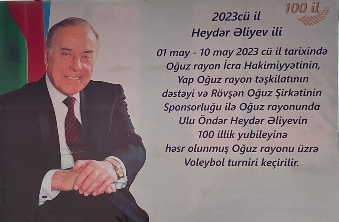 Mayın 1-də Oğuz Olimpiya İdman Kompleksində Oğuz Rayon İcra Hakimiyyəti, YAP Oğuz rayon təşkilatının təşkilatçılığı və “Rövşən Oğuz Qrup” MMC-nin maliyyə ilə Azərbaycan xalqının Ümummilli lideri Heydər Əliyevin anadan olmasının 100 illiyi münasibətilə Oğuz rayonun idarə və müəssisələri, eləcə də rayonun inzibati ərazi dairələrinin komandaları arasında keçirilən voleybol turnirinin açılışı mərasimi baş tutub.