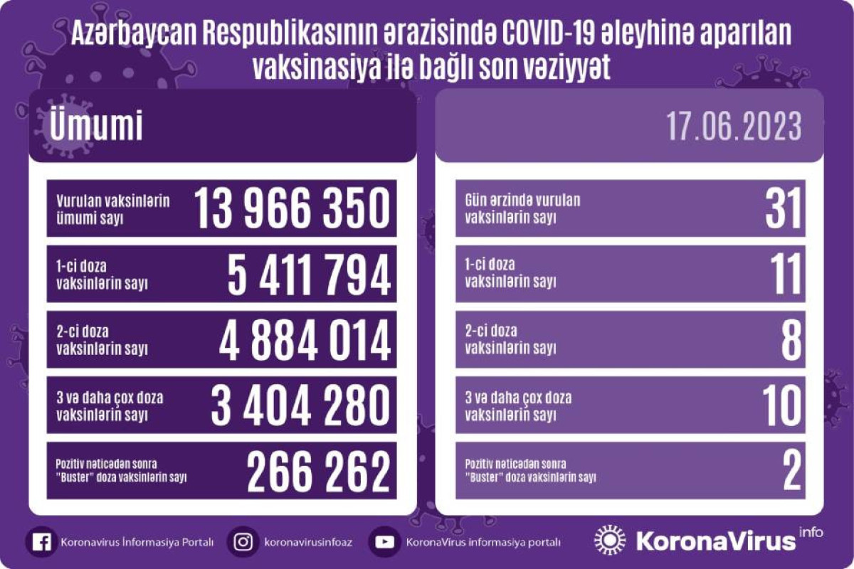 Azərbaycanda son sutkada koronavirus (COVID-19) əleyhinə 31 vaksin vurulub.