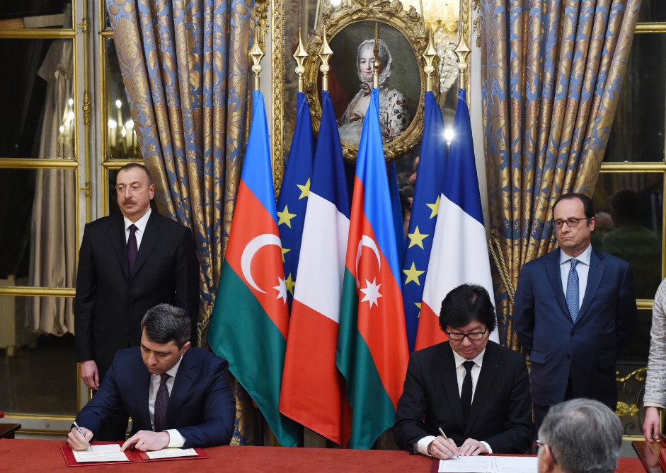 Martın 14-də Parisdə Prezident İlham Əliyevin və Prezident Fransua Ollandın iştirakı ilə Azərbaycan-Fransa sənədlərinin imzalanması mərasimi olub.