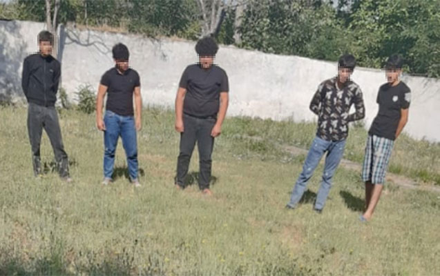 Foto: Hadisədən sonra saxlanılan şəxslər Ağsu RPŞ-nin həyətində