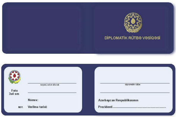 Fərmana əsasən, fövqəladə və səlahiyyətli səfir, birinci dərəcəli fövqəladə və səlahiyyətli elçi, ikinci dərəcəli fövqəladə və səlahiyyətli elçi diplomatik rütbələri alan diplomatik xidmət əməkdaşlarına verilən vəsiqənin nümunəsi təsdiq edilib.