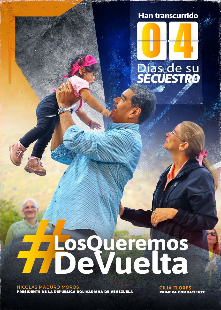 Venesuela Prezidenti Nikolas Maduronun rəsmi teleqram kanalı onun həyat yoldaşı Siliya Flores ilə birlikdə tutulmasından sonrakı günləri saymaqdadır.