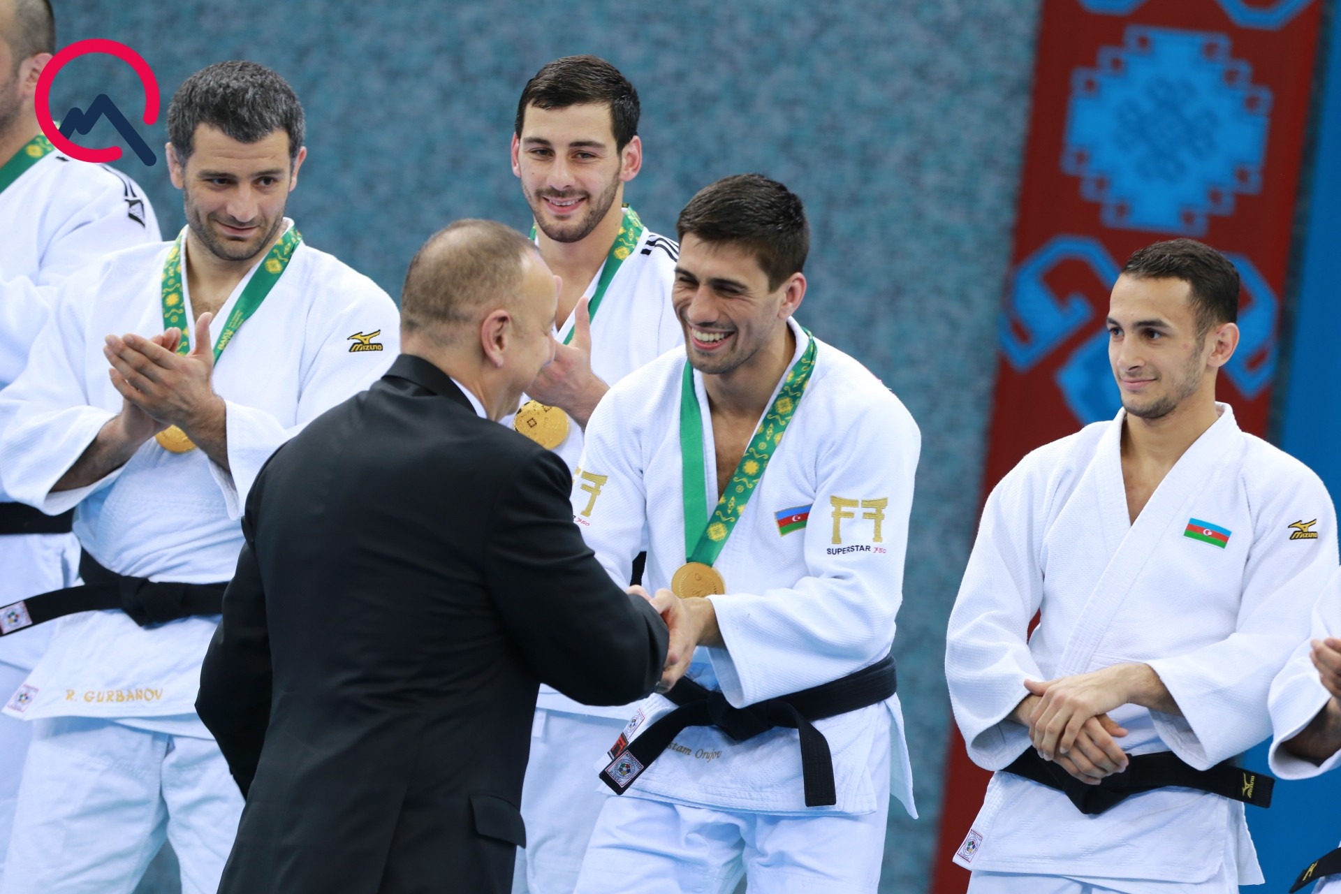 Bakı-2017 IV İslam Həmrəyliyi Oyunlarında kişi idmançılardan ibarət cüdo komandalarının yarışında qaliblərin mükafatlandırılması mərasimi keçirilib.