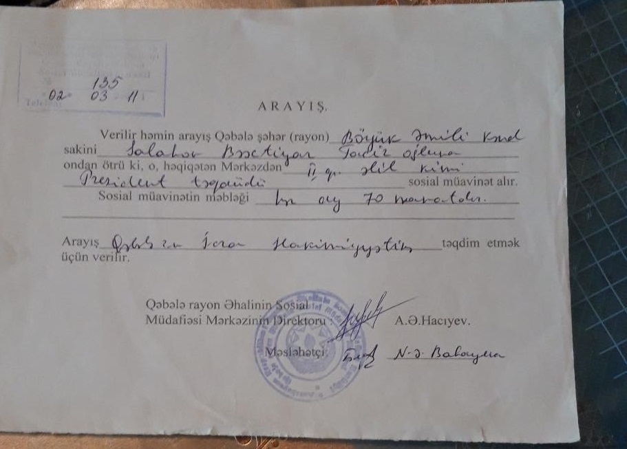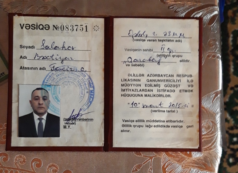 Belə ki, S.Salahova gecə həyat yoldaşının evə gəlmədiyini görərək narahat olub. Həyətə düşəndə ərini maşının sağ oturacağında halsız vəziyyətdə tapıb: “Ərim Salahov Bəxtiyar Tacir oğlu 1-ci Qarabağ müharibəsi veteranıdır, 2-ci qrup əlil, eyni zamanda Prezident təqaüdçüsü olub. Həmin axşam yoldaşım evə gəlmədi, səhər 7-yə qalmış onun evə gəlmədiyini görüb təşvişə düşdüm. Həyətə düşüb onun maşınına yaxınlaşıb qapısını açdım və yoldaşımın sükan arxasında deyil, sağ tərəfdə olduğunu gördüm. Dəfələrlə “düş evə gedək, burda oturma soyuqdur, qalx ayağa” deyib düşürməyə cəhd etsəm də, reaksiya vermirdi. Daha sonra mən onun ayaqlarının qan içində olduğunu gördüm”.